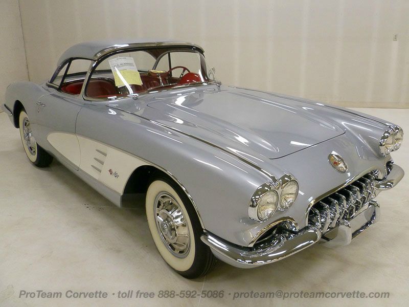 1010T..1959 Corvette Convertible, two tops, 283-245 hp, (2x4's), 4 speed, numbers matching. Classic Cream paint with White coves, Black interior, and White soft top. Recent NCRS/Bloomington Gold quality body-off restoration with no excuses that will pass any potential buyer's inspection. These type restorations normally cost between $100,000.00 to $150,000.00. Optioned with auxiliary hardtop, T-10 transmission, 4.11 posi, Wonderbar radio, dual fours, aluminized off road exhaust, sunvisors, windshield washers, courtesy light, heater, hubcaps, and 6.70x15" wide white tires. Most all factory correct type components including the spare, jack, jack tools, trunk mat, trunk liner, rebound straps, seat belts, washer system, shifter, shielding, air cleaner, generator, distributor, spark plug shields, hoses, hose clamps, fuel filter, carbs, radiator, guide Y-50 mirror, owners manual, sales brochure, and T-3 headlights. Documented with copies of prior owner titles, extensive restoration photos and restoration receipts. Classic Cream with White coves was a very rare paint color combination and one of 89 produced. This recently restored Corvette has yet to be shown, creating an exciting opportunity for the next owner to exhibit the car and compete for trophies, awards, and recognition! Just in from the Lindquist Corvette Collection. Looks, runs, and drives excellent. CC:1 $149,000.00
