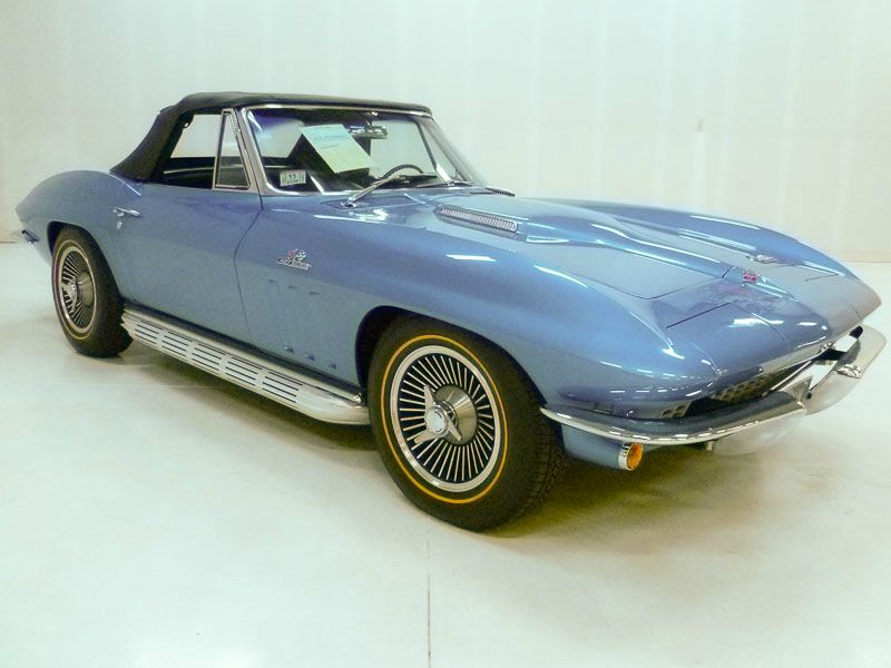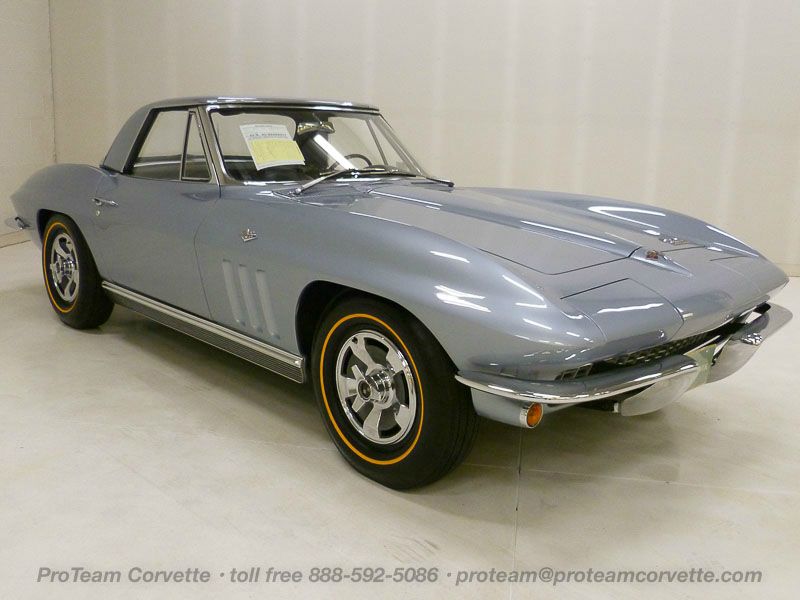 1013T..1966 Corvette Convertible, 427-425 hp, 4-speed, numbers matching motor and has factory original body/trim tag. Nassau Blue paint with Black interior and Black soft top. Body-off restored in show condition and Bloomington Gold certified. These type restorations normally cost between $100,000.00 to $150,000.00. NO HIT body with grill tab in place. Optioned with factory side exhaust, power antenna, transistorized ignition, M-21, 3.70 posi, F-41 special heavy duty suspension, SS brakes, AM/FM radio, back-up lights, hazard warning flasher, tinted glass, K.O. aluminum wheels, and gold stripe tires. Most all factory correct type components including the spare, jack, jack tools, K.O. wheel hammer, clear floor mats, seat belts, washer system, shifter, shielding, braided wires, air cleaner, alternator, distributor, spark plug shields, hoses, hose clamps, radiator, gas door assembly, bowtie mirror, glove box door, owners manual, sales brochure, and T-3 headlights. Documented with the Bloomington Gold certificate, NCRS Shipping Data Report, and some owner history back to 1995. Production date of April 15th, 1966 and delivered new by H.M. Williams Company in Corona, NY (dealer code 283 in zone 27) per the official NCRS/GM Shipping Data Records (SDR). Look, runs, and drives excellent as this car has been recently thoroughly sorted and serviced. CC:1 $149,000.00