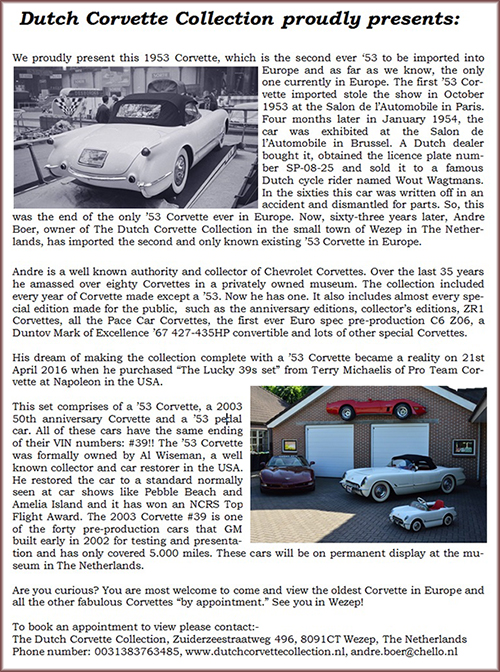 Dear Chad, Lora and I would like to thank you for the tour of your facility and taking time to answer any questions.This was our first visit to your facility and we did not have an appointment. The selection available at proteam is incredible and is helpful when thinking of a model and color. Again, thank you for taking the time on that saturday and we look forward to visiting you soon. "Hi Christine, You sure can. You organized to ship my car here in 1996. It was absolutely no-hassle, problem-free. Truck to the port, then RO-RO. It wasn’t even expensive! Anyway, I appreciate the regular updates from you guys – you’re all a class act! " "Terry, We have never met but I have been a frequent visitor on your website for quite some time and have tried to learn as much about corvettes, especially mid-years as I can. Thanks to you sharing your knowledge with people like myself who appreciate these cars. You have made your hobby your business and I know there is alot of jealousy toward anybody that can do this. With buying and selling corvettes for so many years your knowledge is far and above other corvette enthusiasts. I have never visited Pro Team but hope maybe someday to do so. Thanks again for sharing your knowledge and experiences and hats off to you Terry, you did it your way." "The process was done over the phone. It was very professional from the time the phone was answered, the sale, the delivery, the title, and goodies... and now this. If I was to purchase another Corvette, because of this experience, I would shop ProTeam. It's a matter of trust. ProTeam has a great reputation and knows 'Vette's better than most. Also, the return policy takes the worry out of not liking the car. The process was very fair. Thanks." "Dear Terry, as I sit at my desk in my business of 24 years, I am amazed at your unbelievable collection of Corvettes. I also laugh when someone is trying to outbid you at the auctions. If you want the car, you get it. My old picture of my 1969 350-350hp Riverside Gold Convertible with 22,000 miles on it when I sold it sits beside me at my desk. I miss my car. Going through your catalog, I calculated you are saving customers $2,696,000.00 with your sale prices from 1953 to 1967. Way to go. I commend your effort to make the cars for sale at better prices. Of course, we older guys with too many bills still can't do it. When I hit the lottery, I promise you I will be out to get a 1967 and that Grey LT1 you have (139Z)... for some reason, that piece really moves me. Keep up the great service you do and most of all, stay healthy. That's what life is all about." "Hello Terry, I received the '62 Fuelie I bought from you, this past weekend. I am very pleased with the car. Your salesman was very professional and was honest in his description. It was a pleasure working with him. I buy/sell many cars as I am always changing up my personal collection, but this is the first experience with ProTeam. I hope we can continue to do business together in the future. Best Regards," "Terry, I wanted to let you know how much I appreciate your graciousness in taking the time to talk to me and impart your knowledge and insight to me. I really enjoyed meeting you and Fred. It was an enjoyable experience. Thanks." "I thought your presentation (Al Grenning at ProTeam Corvette November 2008) was one of your best ever. The new material presented (especially the M22/L88 stuff) was not only entertaining, but represents some of the most important research in the field of classic Corvettes in many years. Its apparent that a great deal of analytical detective work was required to locate and make logical sense out the maze of GM paperwork from this period. Its quite a story--worthy of a book in its own right. I was also highly impressed by the people (Bill, Kevin et al) who spent their own money to bring some very significant cars to the event. This dovetailed nicely with your presentation, and everyone seemed to enjoy looking at these cars and hearing their stories. The seminar raised almost $1,000.00 which will all go to charity. At this point it looks like the money will go to either the Columbus Children's Hospital or breast cancer research. The Heart of Ohio Chapter is thrilled to have been able to play a small part in the success of this event." "We were impressed with your "ONLY IN AMERICA" paragraph [ProTeam eZine 11-5-2008]. This mailing has the sole purpose of promoting your business and SELLING but you took the time to reflect on what a great country we have. Thank you for the nice comments we so desperately need at this time of economical and political turmoil. Our new President Elect cannot cure the eight year decline in our economy overnight but attitudes like yours' in showing your patriotism and support is a step in the right direction. More business people should do the same. We were also glad to read your comments on Barrett-Jackson. We could only attend the Friday auction and felt the prices were somewhat down. It's nice to hear that things improved on Saturday. One observation we made was that in comparison with Kruse (Auburn Auction) the Auctioneer had a special way of getting the bidders back in after a lull in bidding. We were much more impressed with their teamwork on the auction block. They were there to sell cars and not to chit chat with small talk during bidding as we have noticed in Auburn. Thanks again for your written support in the direction the U.S.A. is taking." "Dear Fred, Thank you for taking the extra time with me on Saturday to go in, around, and under my "new" car. I especially appreciate your patience in answering all of my questions about care and maintenance. The first weekend involved many joy rides and a smile so big my face still hurts, Your group at Pro Team Corvette is top notch, and it shows. The car looks awesome, sounds great, and drives wonderfully!! My Mom was a bit teary eyed seeing the car returned to her original glory and knowing Dad was smiling do