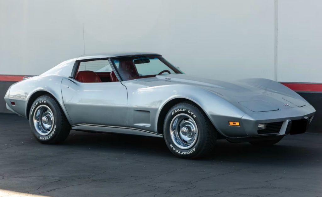 1006W..1977 Corvette Coupe with removable T-Tops, L82, 4 speed, 10,021 actual mile time-capsule in pristine new original condition. Factory Silver paint with Red leather interior. Multiple NCRS Top Flight awards including a Regional Top Flight. Options include factory air conditioning, Gymkhana suspension, M21 close-ratio 4-speed transmission, leather, tilt-n-telescopic steering column, rear window defogger, power steering, power brakes, power windows, AM/FM stereo radio, luggage rack and roof panel carrier, floor mats, rally wheels and raised white lettered tires. Documented with the GM build sheet and NCRS awards... plus much more.